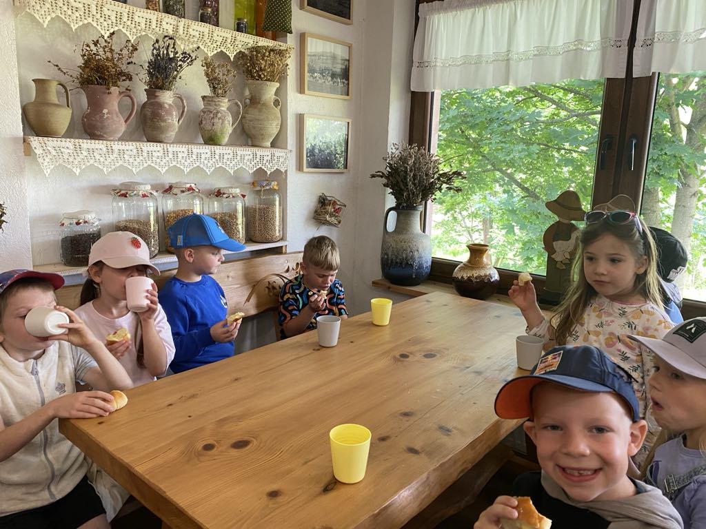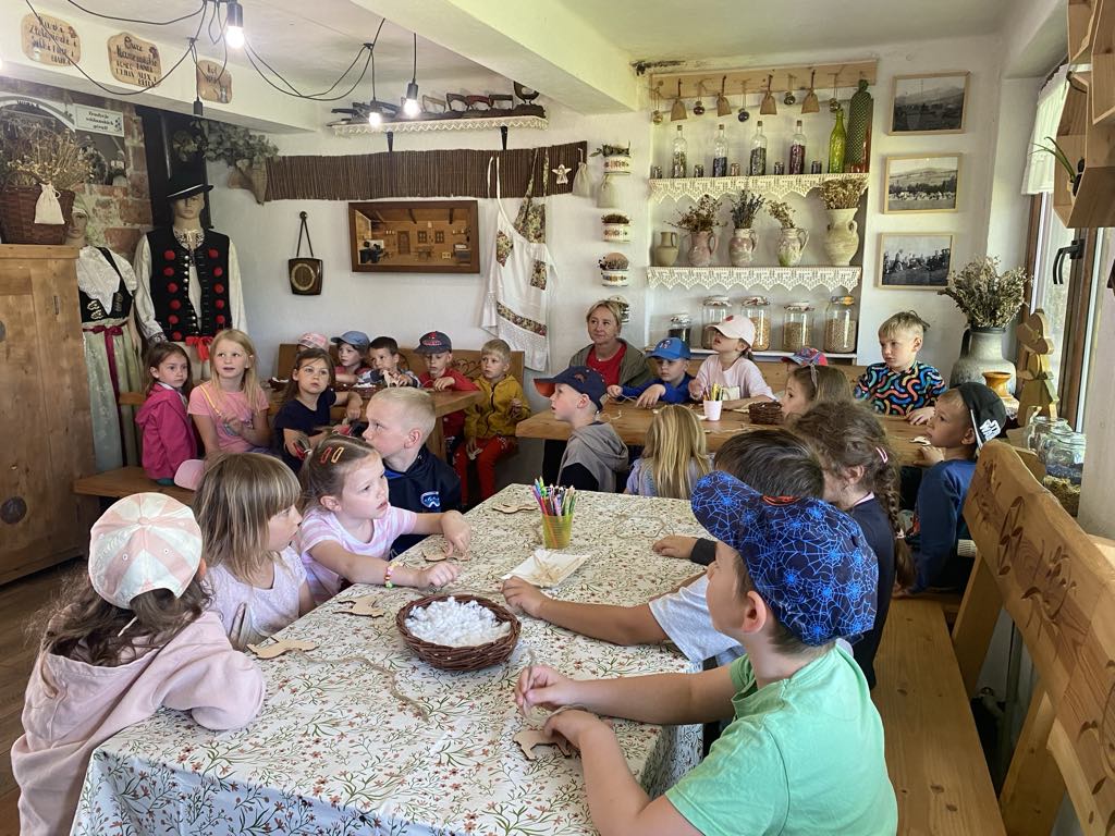 Wczoraj, zerówka wybrała się na wycieczkę do Agroturystyki u Gazdy. Wycieczka odbyła w się w ramach Projektu Unijnego “Wsparcie edukacji w przedszkolach w gminie Wisła”. Celem wycieczki była preorientacja zawodowa, by zapoznać dzieci z zawodem gospodarza,  hodowlą zwierząt wiejskich, strojami regionalnymi i procesem powstawania masła i serów. Dzieci mogły wydoić krowę i wykonać pracę plastyczną-baranka. Czas był bardzo atrakcyjnie spędzony.