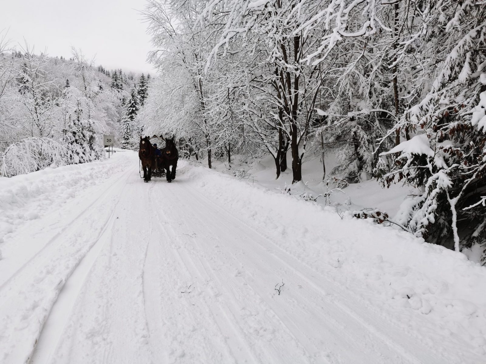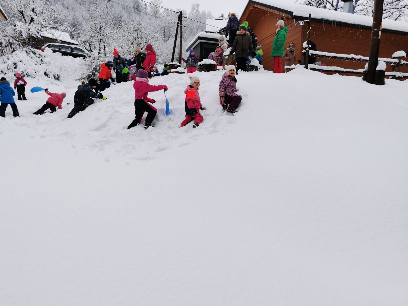 Przedszkolaki w ostatnich dniach wykorzystały zimową aurę i wybrały się na kulig saniami, doliną Gościejów. Podczas przejażdżki było wiele wrażeń, a potem na przedszkolaków czekał pyszny poczęstunek: domowe paczki, ciasto i ziołowa herbatka, natomiast w kolibie można było się zagrzać przy ognisku.