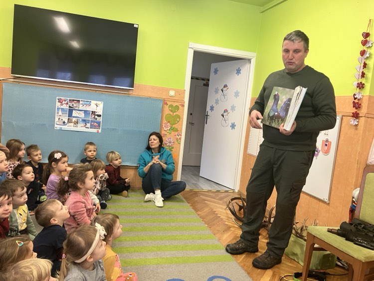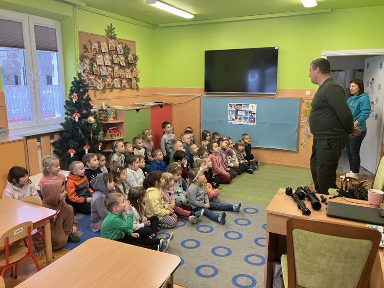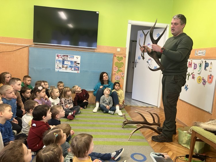 „Kto pamięta o zwierzętach?” w przedszkolu odwiedził nas Pan Marek Cieślar myśliwy. Opowiedział dzieciom jak myśliwi pomagają zwierzynie przetrwać trudny czas zimowy. Dzieci żywo reagowały w czasie pogadanki i dzieliły się swoimi spostrzeżeniami. Dziękujemy serdecznie:)