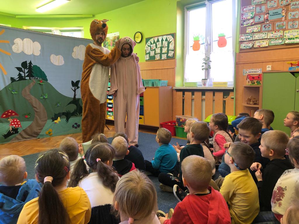 Nasze przedszkole odwiedzili aktorzy krakowskiego Teatru “Skrzat”, wystawiając dla dzieci pouczającą bajkę pt.: “O Prosiaczku Brudasku”. Przedszkolaki poznały konsekwencje niezdrowego i niehigienicznego życia oraz oceniały zachowania służące i zagrażające zdrowiu. Utrwalały wiedzę o właściwym sposobie odżywania się. Dzieciom bardzo podobała się bajka. Aktorzy prezentowali pouczające i wesołe piosenki oraz włączali dzieci do przeżywania przedstawienia poprzez ruch i dialog.