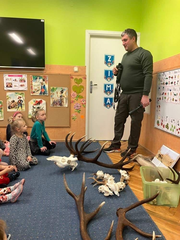 10 stycznia nasze przedszkole odwiedził Pan Marek Cieślar, który jest myśliwym. W czasie tego spotkania dzieci słuchały opowieści o życiu zwierząt w okresie zimy i ich trudności w zdobywaniu pokarmu. Dziękujemy bardzo za przekazanie dzieciom ciekawych informacji.