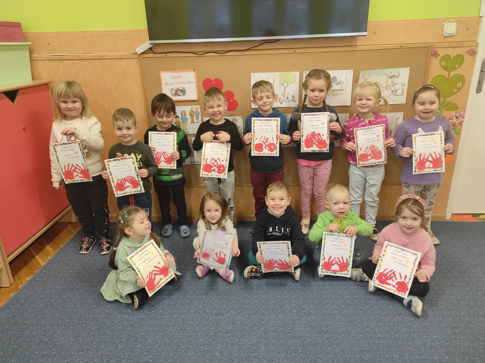Wykonały również kolorowe laurki, które wraz z gorącymi życzeniami powędrowały dla babć i dziadków.