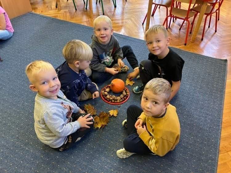 Dzieci z grupy młodszej wykonywały piękne jesienne mandale. Przedszkolakom bardzo się podobały zabawy z wykorzystaniem darów jesieni.