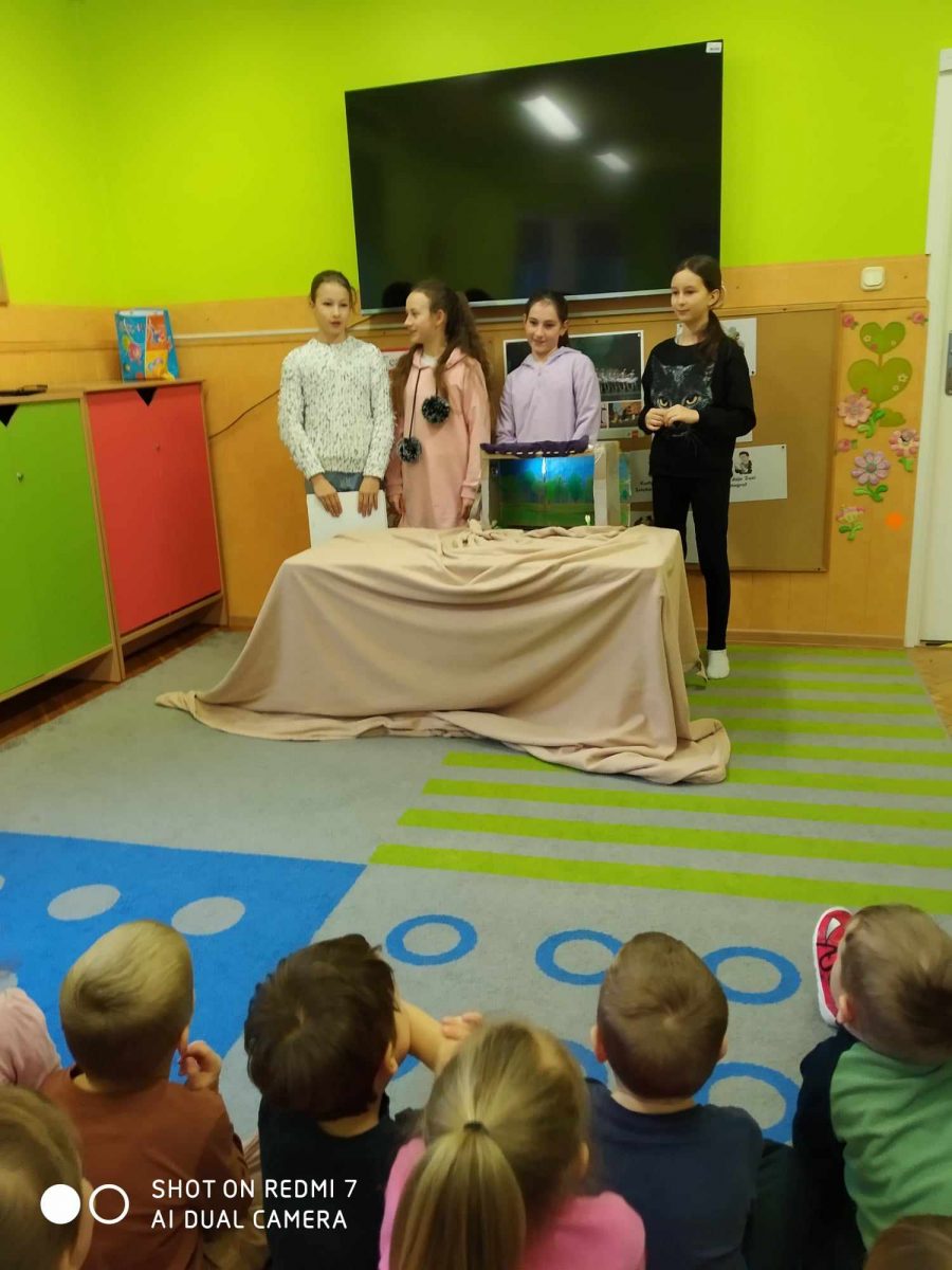 W zeszłym tygodniu w przedszkolu gościliśmy uczennice klasy piątej ze Szkoły Podstawowej z Czarnego z teatrzykiem pt: “Zawsze warto spróbować”. Uczennice zupełnie same zrealizowały cały projekt, czyli napisały scenariusz, zrobiły scenę, pacynki i pomyślały o efektach specjalnych. Przedstawienie było bardzo interesujące, a później przedszkolaki dowiedziały się co to jest morał i jakie przesłanie było w przedstawieniu.