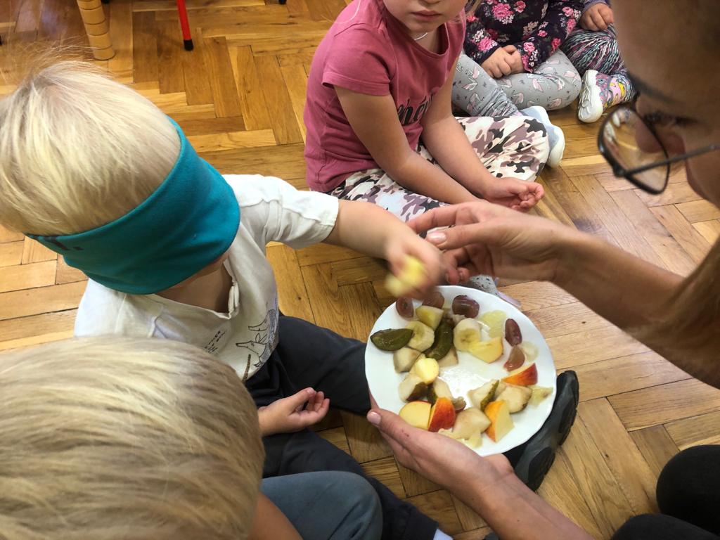 Za pomocą 3 zmysłów: dotyk, węch oraz smak rozpoznawali owoce i warzywa,