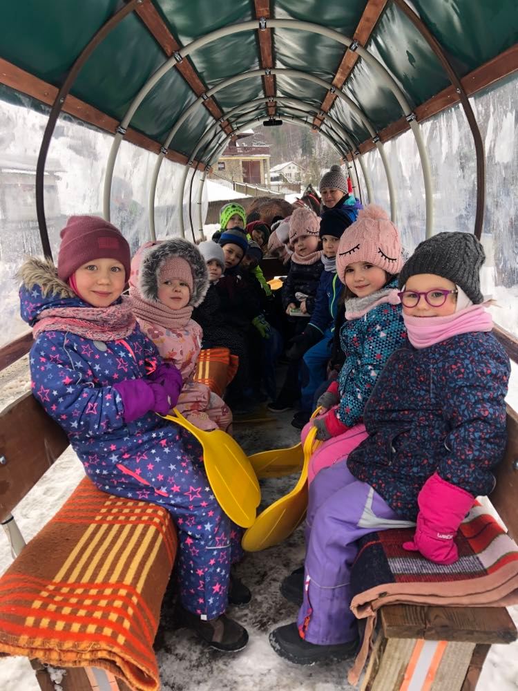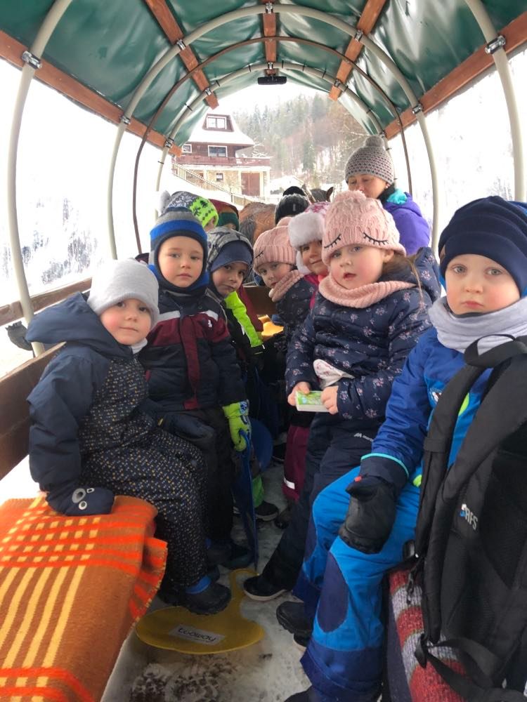 2 lutego dzieci z naszego przedszkola wyruszyły na kulig doliną Gościejowa. Przedszkolaki poznawały uroki zimy podczas długo wyczekiwanej wycieczki. Miały możliwość jazdy wozami zaprzężonymi w prawdziwe konie. Po pełnym wrażeń kuligu na dzieci czekał słodki poczęstunek i gorąca herbatka. Było dużo śmiechu i zimowej zabawy śniegu, a uśmiechy nie schodziły z twarzy przedszkolaków.