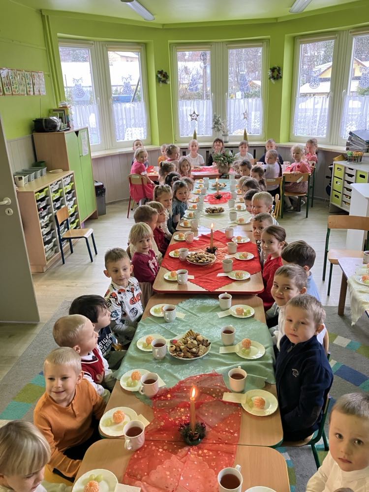 W ostatnich dniach przed świętami Bożego Narodzenia przedszkole na Nowej Osadzie przeżywało wspólnie Wigilię. Dzieci i personel przedszkola zasiedli przy pięknie nakrytym wspólnym stole. Składano sobie życzenia, śpiewano kolędy, i częstowano się pysznymi ciasteczkami, które przyniosły dzieci!