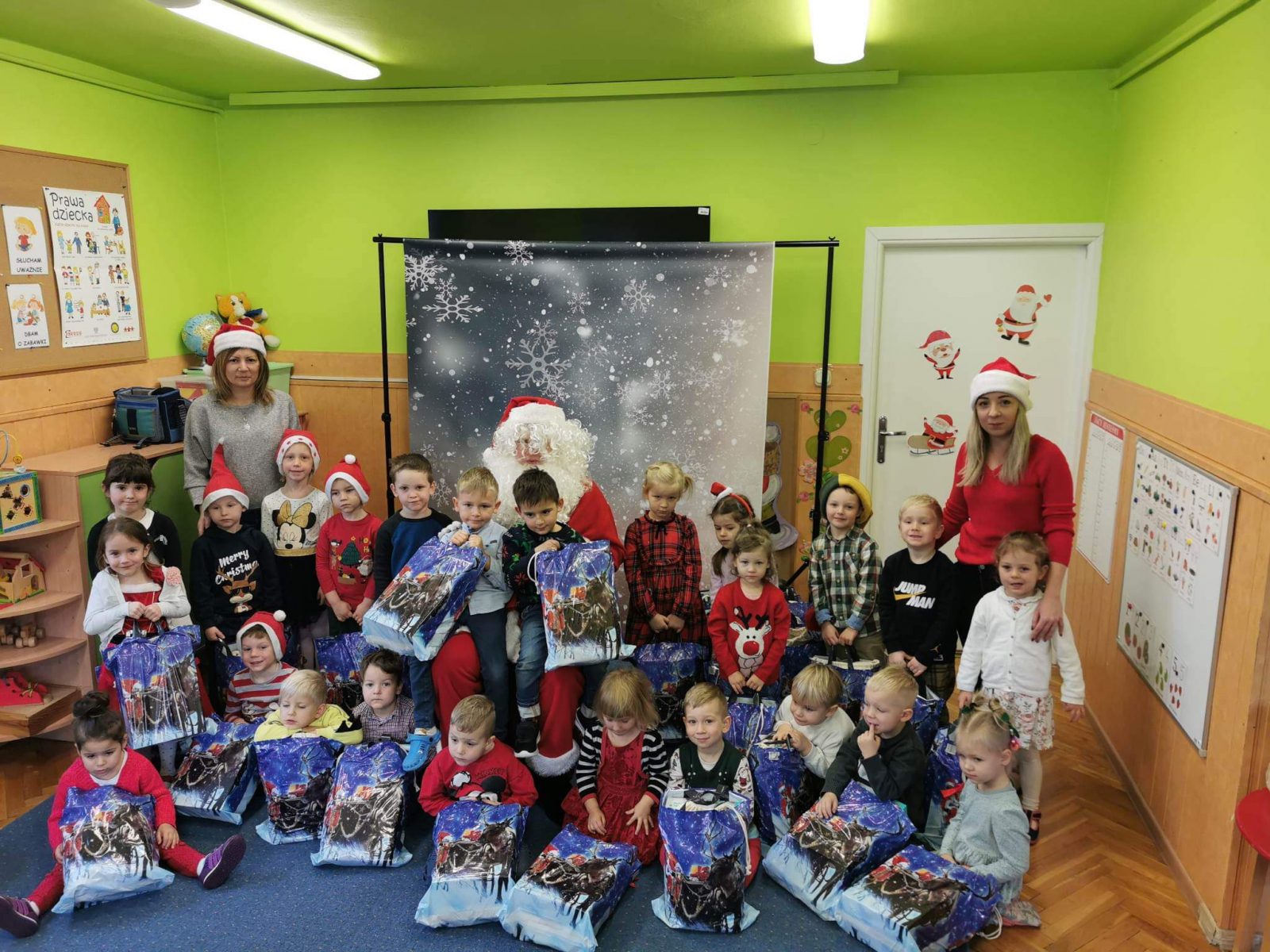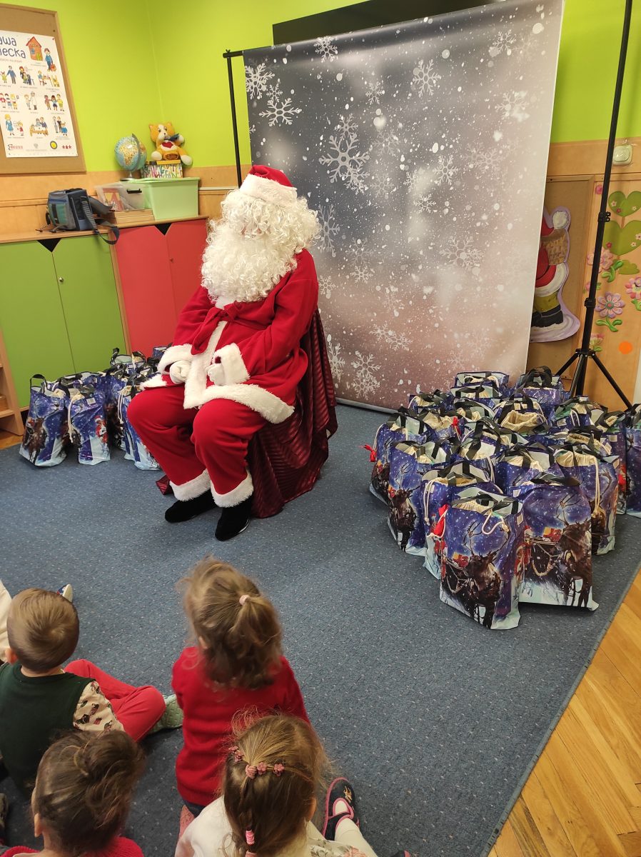 W naszym przedszkolu pojawił się długo oczekiwany gość Święty Mikołaj. Na jego wizytę dzieci cierpliwie czekały. Powitaliśmy św. Mikołaja wierszem i piosenką . Spotkanie z Mikołajem minęło w bardzo miłej atmosferze i przyniosła dzieciom wiele radości. Św. Mikołaj obdarował wszystkie dzieci prezentami.